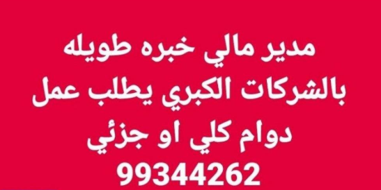 مدير مالي خبره طويله بالشركات الكبرى يطلب عمل دوام كلي او جزئي